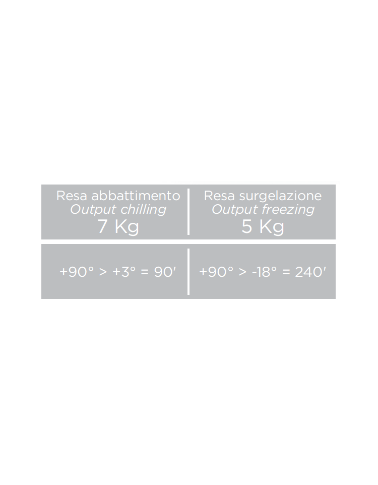 Dal design elegante e pulito, questo modello si adatta perfettamente agli ambienti meno spaziosi. È un abbattitore compatto da banco GN2/3, ideale per bar e piccole attività, che offre prestazioni da grande abbattitore grazie al termostato digitale con allarme sonoro “aperture porta”, sonda a spillone, cicli di abbattimento a temperature controllata o a tempo, modalità automatica di conservazione del cibo e fine ciclo di abbattimento.