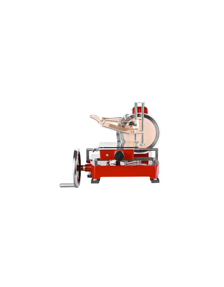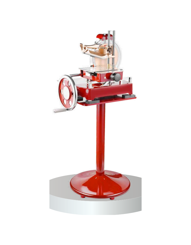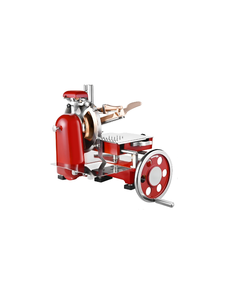 Il meccanismo a volano permette un controllo totale sul taglio, senza vibrazioni e con un movimento estremamente regolare. È la scelta ideale per chi desidera valorizzare ogni fetta, esaltando la qualità del prodotto tagliato.