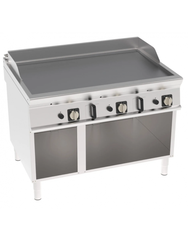 Fry-Top a gas su vano aperto, 3 zone cottura, piastra liscia cromata spazzolata cm 113x69, potenza gas Kw 24 - cm 120x90x90h