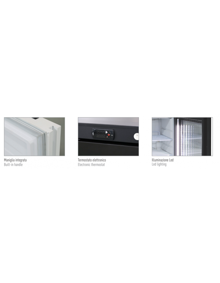 Armadio freezer statico, porta vetro. Bassa temperatura.