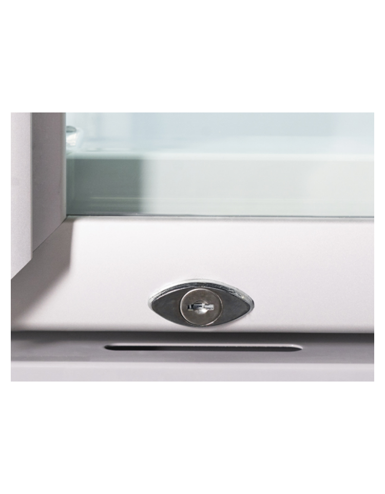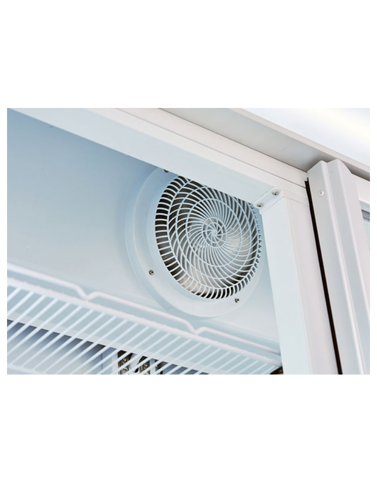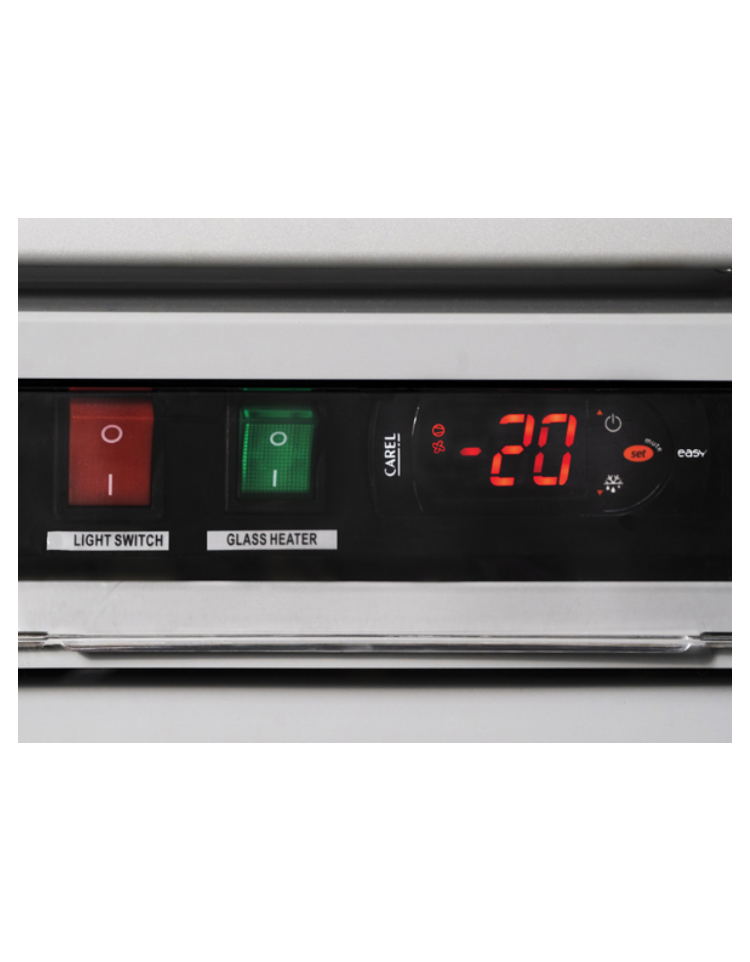 Congelatore verticale con capacità da 560 litri, con corpo in acciaio di colore bianco ed una porta in vetro. Equipaggiato con luce LED verticale con interruttore indipendente, porta riscaldata con doppio vetro di sicurezza temperato, sistema di raffreddamento ventilato, 6 ripiani regolabili, serratura, porta autochiudente, 4 ruote per un facile posizionamento e termostato digitale. Il modello è stato progettato per essere utilizzato in molteplici modi, garantendo sempre una corretta conservazione degli alimenti per una corretta esposizione e apprezzamento dei prodotti all’interno.