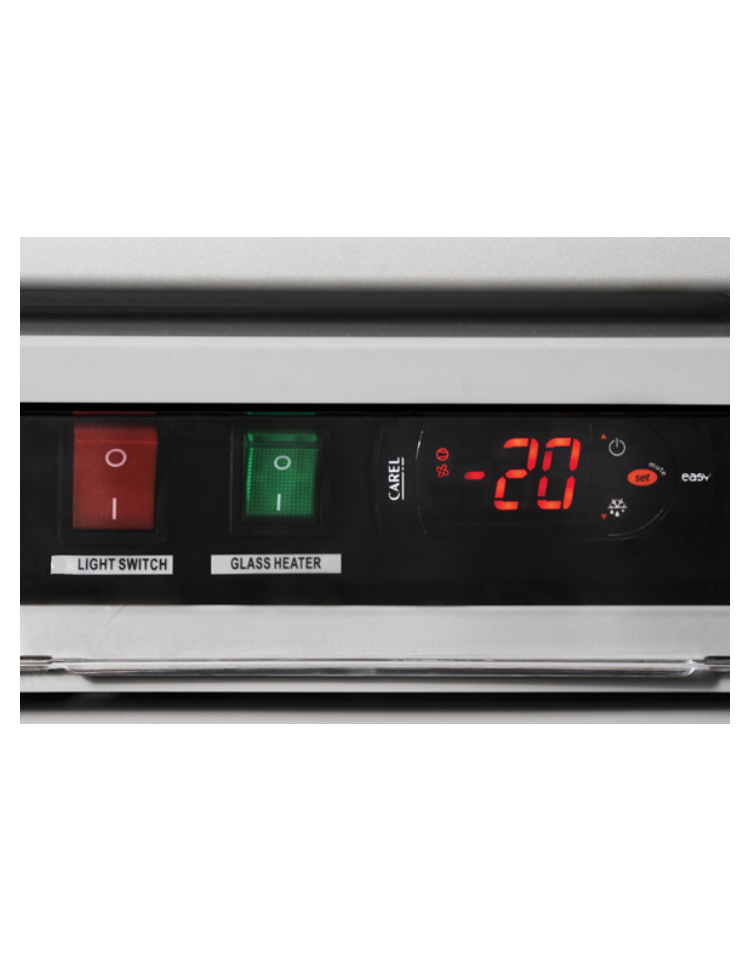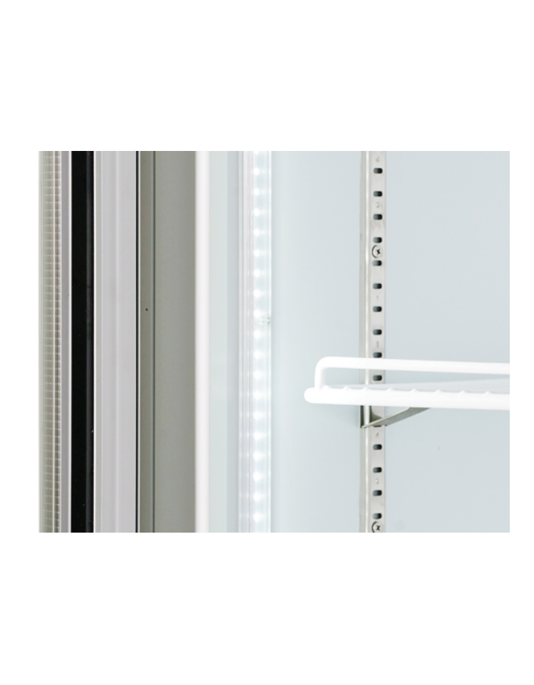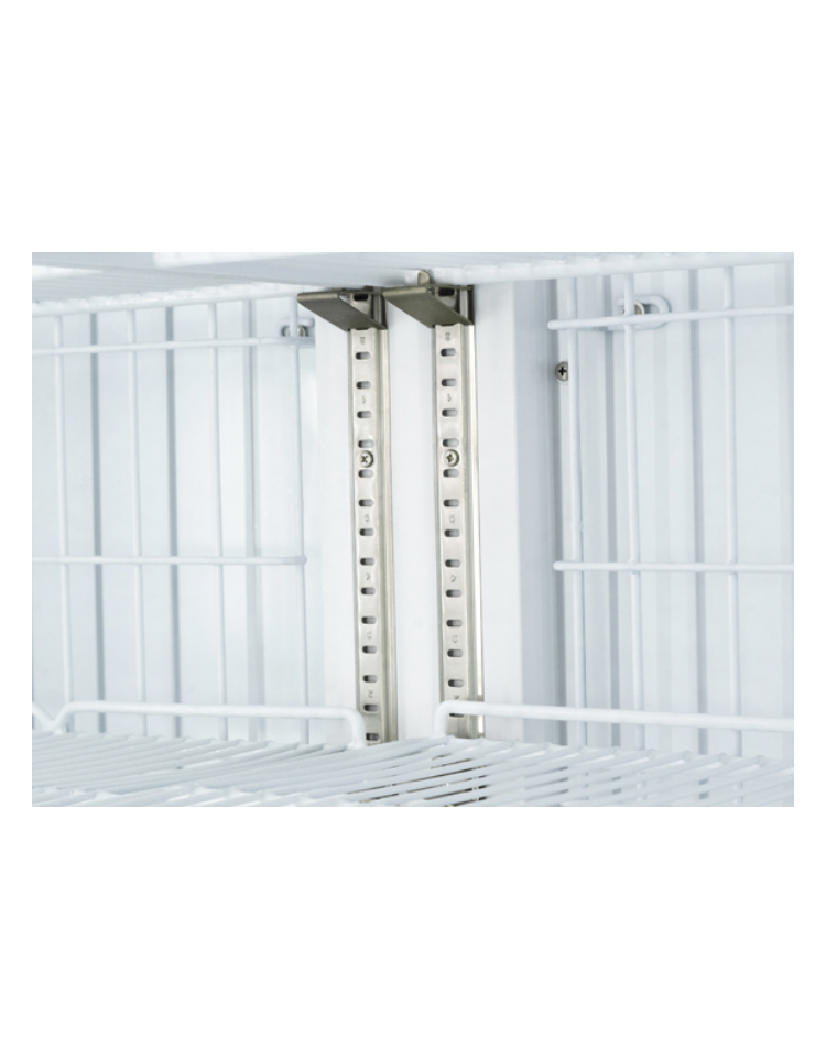Congelatore verticale con capacità da 1450 litri, con corpo in acciaio di colore bianco e tre porte in vetro. Equipaggiato con luci LED verticali con interruttore indipendente, porta riscaldata con doppio vetro di sicurezza temperato, sistema di raffreddamento ventilato, 18 ripiani regolabili, serratura, porta autochiudente, 6 ruote per un facile posizionamento e termostato digitale. Il modello è stato progettato per essere utilizzato in molteplici modi, garantendo sempre una corretta conservazione degli alimenti per una corretta esposizione e apprezzamento dei prodotti all’interno.