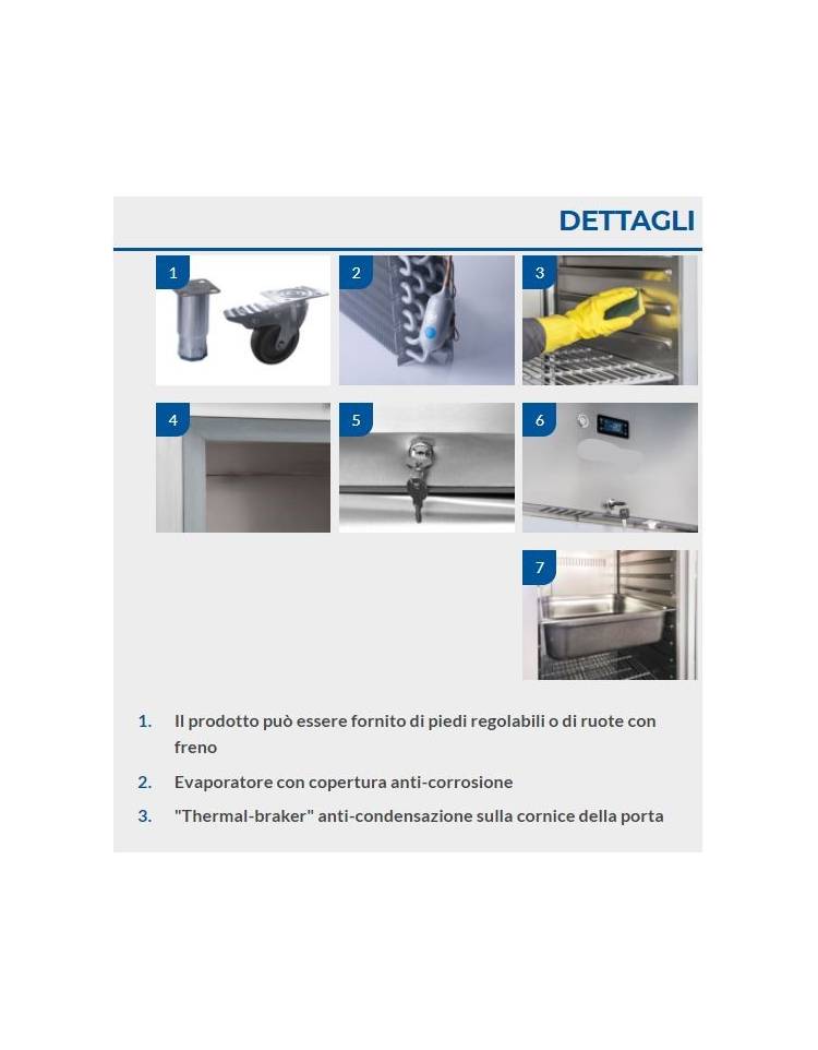 Armadio congelatore GN2/1 inox - refrigerazione ventilata -18/-22°C - CLASSE D - guide stampate - cm 70x82,3x204,5h