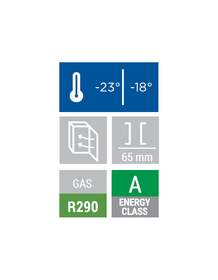 Questo modello di armadio freezer in ABS da 600 litri rappresenta la perfetta combinazione tra alte prestazioni, costi accessibili e bassi consumi.Di colore acciaio e interno in termoformato, il modello è dotato di termostato digitale, allarme “porta aperta” e “alta temperature”, porta autochiudente e reversibile, serratura, interruttore generale, 6 ripiani evaporatore fissi, valvola di pressione per facilitare l’apertura della porta, ventola di assistenza interna e 2 piedini regolabili + 2 rotelle posteriori.Il nostro armadio congelatore è attento all’ambiente e al risparmio energetico: in Classe A, equipaggiato con gas refrigerante eco-friendly R290 e schiumatura isolante da 65 mm su ciascun lato.