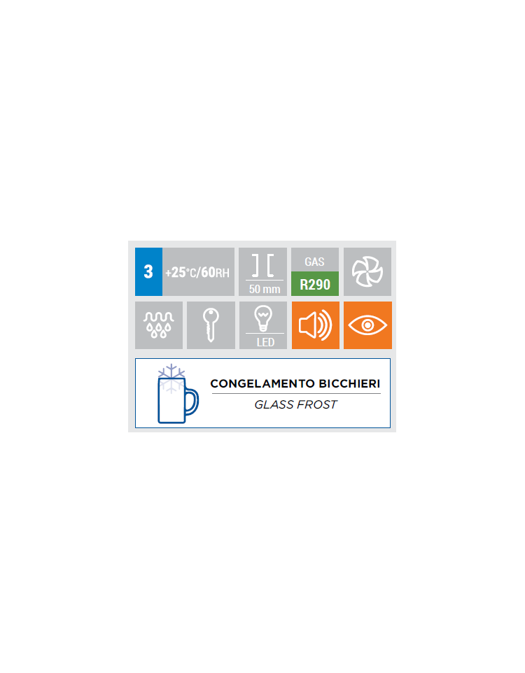 Range di temperatura speciale (+5°C~-12°C) per il congelamento dei bicchieri