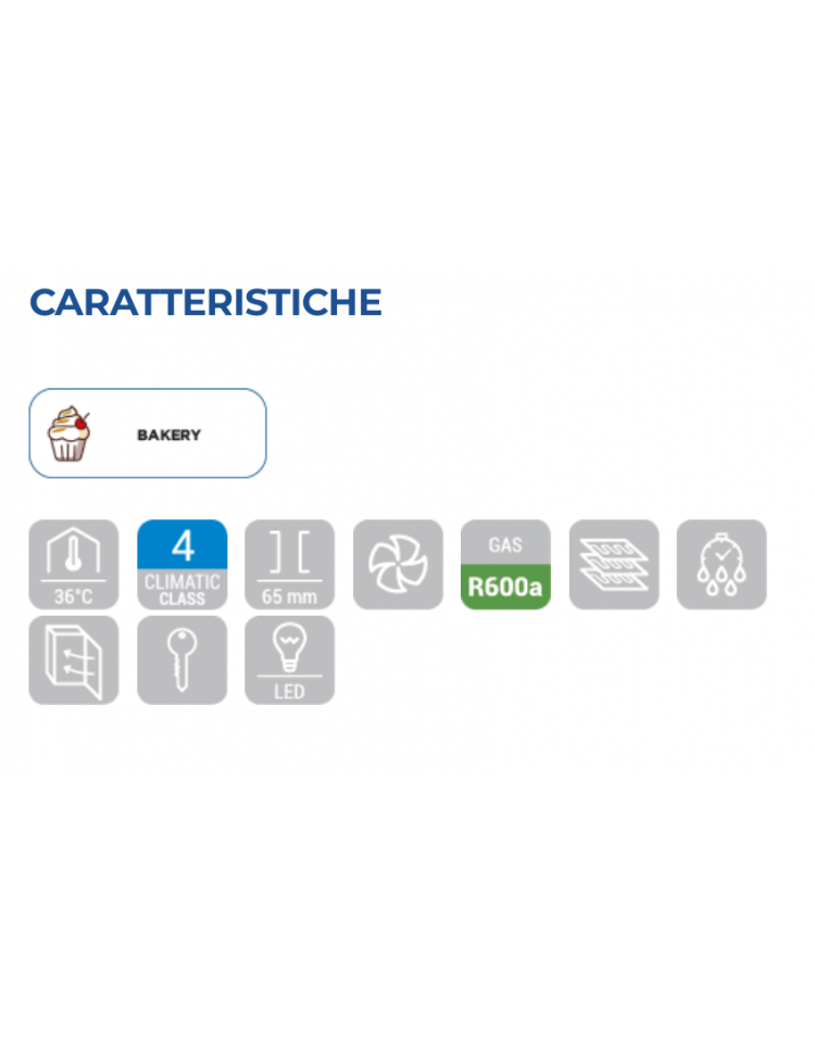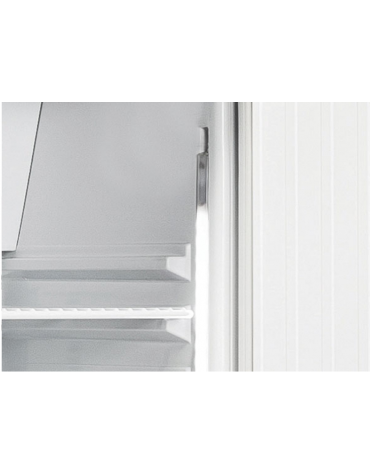 Questo frigorifero professionale di colore bianco con interno in termoformato e porta in vetro, è stato sviluppato pensando alle necessità di conservazione di semilavorati e preparati per pasticceria. Dotato di una pratica maniglia esterna in acciaio inox, porta autochiudente, 5 ripiani regolabili EURONORM 600×400, sistema evaporatore roll-bond con raffreddamento ventilato, attento all’ambiente ed al risparmio energetico grazie al gas refrigerante eco-friendly R600a e alla schiumatura isolante da 70 mm per lato. Luce verticale a LED, serratura di serie e piedini regolabili in altezza contribuiscono a rendere questo frigorifero professionale un prodotto adatto a tutte le necessità e spazi.