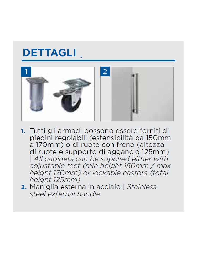 N.4 Piedi in acciaio regolabili – (Ruote con freno opzionabili)