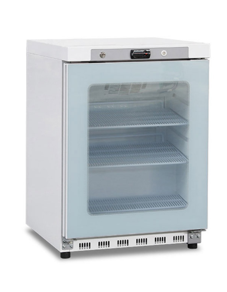 Armadio frigorifero bianco GN2/1 in ABS con porta in vetro - refrigerazione Roll-Bond con ventilatore +3°/+10°C - cm 78x73x189h