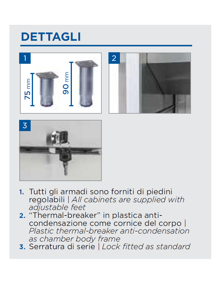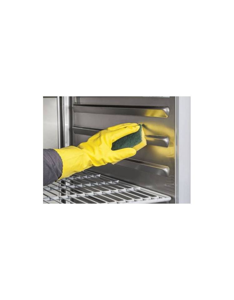 Pulito ed elegante, grazie al controller digitale con interruttore generale indipendente e al caratteristico design del pannello superiore e della porta. Questo modello rappresenta la perfetta combinazione tra tecnologia ed esperienza produttiva, con porta autochiudente per evitare sprechi di energia, guide stampate per aiutare nel processo di pulizia, per risparmiare spazio all’interno dell’armadio e per consentire ai 4 ripiani GN 1/1 montati di serie di supportare un peso superiore allo standard. Il nostro armadio refrigerato è attento all’ambiente e al risparmio energetico grazie al gas refrigerante eco-friendly R290 e alla schiumatura isolante da 70 mm su ciascun lato. Luce interna a LED, serratura di serie, porta reversibile e piedini regolabili in altezza (da 75 mm a 90 mm) contribuiscono a rendere questo frigorifero professionale un prodotto di alta fascia.