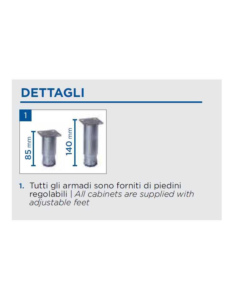 N.4 Piedi in acciaio regolabili – (Ruote con freno opzionabili)