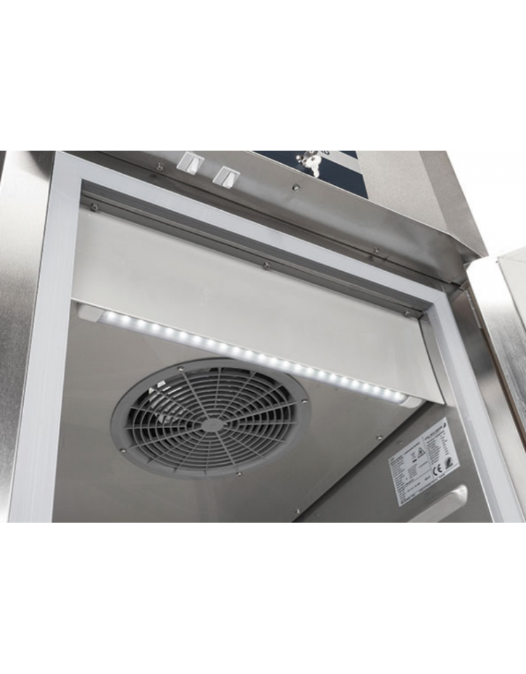 Pulito ed elegante, grazie al controller digitale a filo con interruttore generale indipendente e al caratteristico design del pannello superiore e della porta. Questo modello rappresenta la perfetta combinazione tra tecnologia ed esperienza produttiva, con porta autochiudente, allarme “Apertura porta” e “Alta temperatura” per evitare sprechi di energia, guide stampate per aiutare nel processo di pulizia, per risparmiare spazio all’interno dell’armadio e per consentire ai 4 ripiani GN 2/1 montati di serie di supportare fino a 60kg di peso. Il nostro armadio refrigerato è in Classe B, attento all’ambiente e al risparmio energetico grazie al gas refrigerante eco-friendly R600a e alla schiumatura isolante da 85 mm su ciascun lato. Luci interne a LED, serratura di serie, porta reversibile e piedini regolabili in altezza (da 85 mm a 140 mm) contribuiscono a rendere questo frigorifero professionale un prodotto di alta fascia.