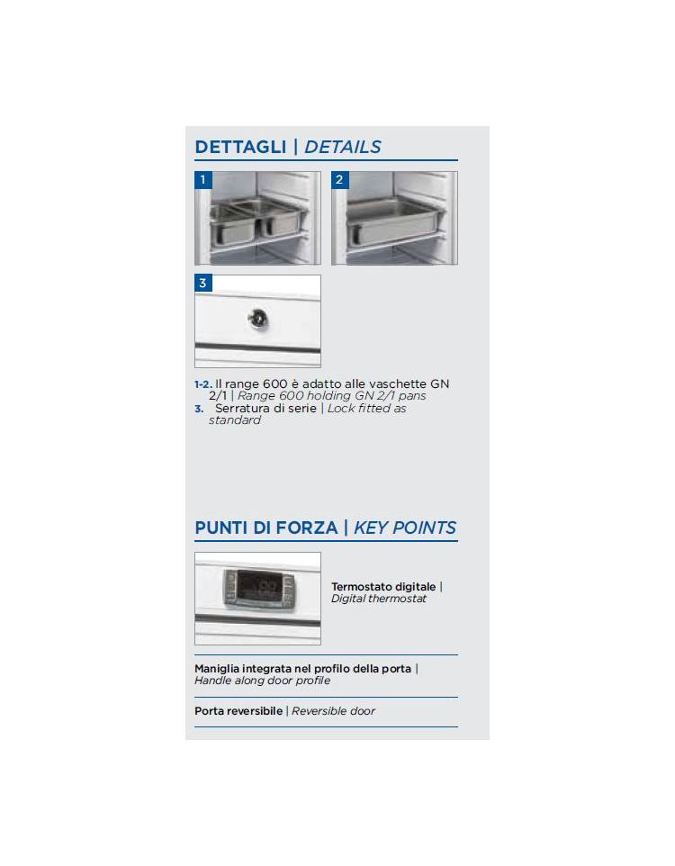 Armadio frigorifero professionale Lt 600 GN 2/1 - Refrigerazione Roll-Bond con ventilatore +2° +10°C - cm 78x73x189h