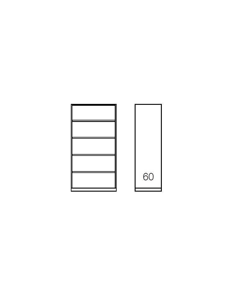 Realizzato con lamiera d'acciaio di 1° scelta con spessore 8/10 mm con particolari di assemblaggio spessore 15/10 mm. Vi sono 4 ripiani spostabili predisposti per l'applicazione di cartelle sospese a lettura verticale, interasse 33 cm. Lo spostamento avviene su cremagliera con passo 30 mm. I fianchi hanno gli spigoli esterni arrotondati raggio 8 mm. E sono incastrati alla base mediante 4+4 ganci metallici ricavati con lo stampaggio della lamiera (spessore 20/10) mentre il cappello è fissato ai fianchi mediante 4 bulloni filettati 8MA. I fianchi sia anteriormente che posteriormente sono tutti raggio 8 mm. e gli spigoli del cappello sono completamente arrotondati. Le schiene sono fissate alla struttura dell'armadio con viti autofilettanti, in modo da garantire la massima rigidità, esse sono posizionabili sia con faccia a vista esterna sia con faccia a vista interna. La verniciatura viene effettuata con polveri epossidiche in forno a 190° C previo trattamento anti corrosione.