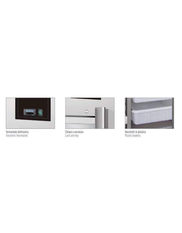 Armadio refrigerato inox 1 porta per pesce - Lt 600 - Refrigerazione statica con evaporatore a soffitto -2°/+8°C - cm 68x81x200h