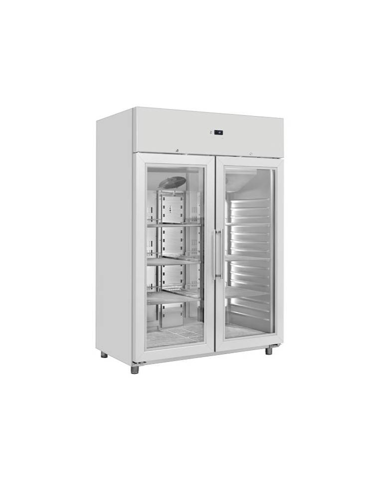 Armadio refrigerato ventilato due porte in acciaio inox, GN2/1 - Temp. 0/+8°C - Lt 1330 - Classe B - cm 148x82,8x205h