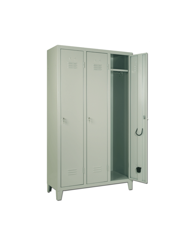 Gli armadi spogliatoio sono realizzati su piedi con altezza pari a cm 15, la loro struttura portante e' realizzata in lamiera d'acciaio profilata prima scelta (nastri tipo fe dc01).