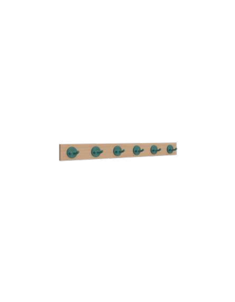 Attaccapanni a Parete 5 Posti - Tavoletta in legno nobilitato colore faggio - Portamantelli in ABS colori a scelta - cm 100x15H