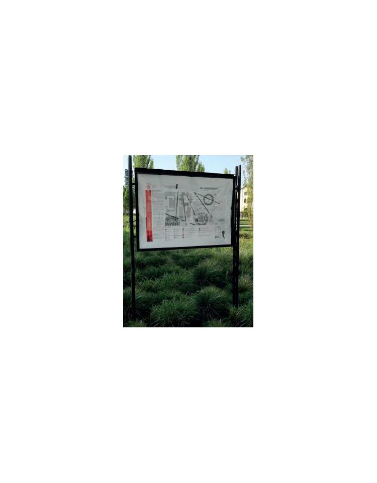 La bacheca è composta da due supporti in acciaio realizzati con tubolari D.40 mm collegati tra loro tramite piastrine saldate.