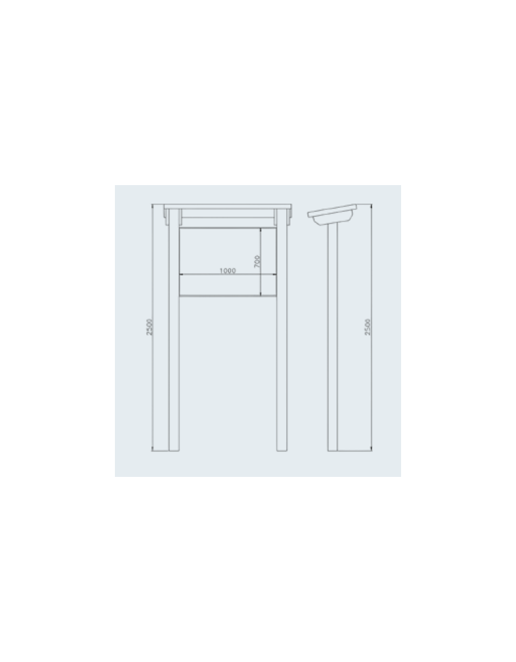 La bacheca è realizzata interamente in legno. Il tetto a due falde è in perline, rivestito di materiale impermeabile alla pioggia. Può avere dimensioni e forme diverse a seconda del luogo ed uso. Adatto a percorsi in aperta campagna, lungo i fiumi o nelle zone montane.