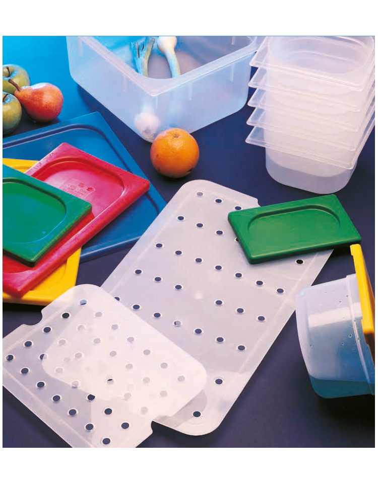Bacinella contenitore GN 1/1 in polipropilene traslucido e impilabile, ideale per ristoranti, hotel e imprese di catering che necessitano di contenitori standardizzati affidabili che soddisfano le specifiche del settore con prestazioni durature e versatilità operativa. Lavabile in lavastoviglie con normali detersivi. Non utilizzare pagliette e sostanze abrasive.