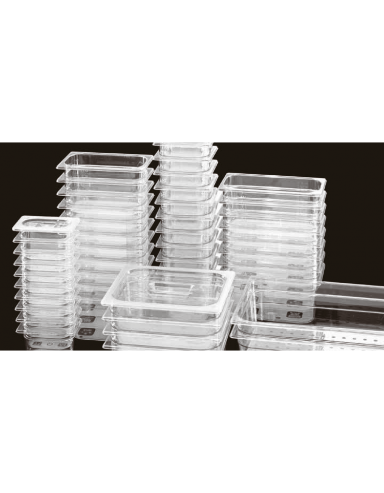 Bacinella contenitore GN 1/3 in Tritan durevole, un materiale privo di BPA che garantisce sicurezza alimentare e resistenza all'uso intensivo. Ideale per preparare, conservare, cucinare e presentare alimenti in ambienti di ristorazione commerciale.