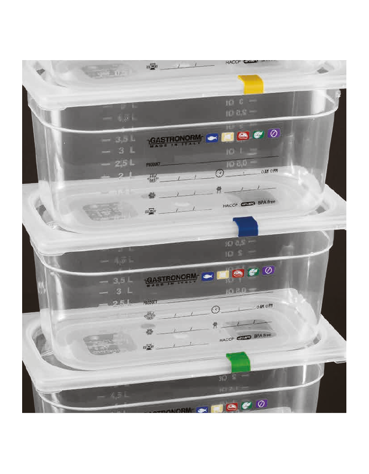 Termoresistente da -40°C a +80°C, utilizzabile con forni, frigoriferi, banchi refrigerati e carrelli professionali