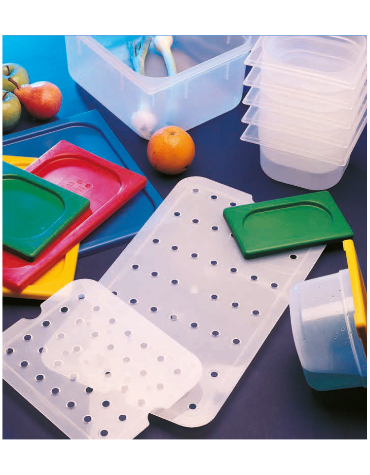 Bacinella contenitore GN 1/6 in polipropilene traslucido e impilabile, ideale per ristoranti, hotel e imprese di catering che necessitano di contenitori standardizzati affidabili che soddisfano le specifiche del settore con prestazioni durature e versatilità operativa. Lavabile in lavastoviglie con normali detersivi. Non utilizzare pagliette e sostanze abrasive.