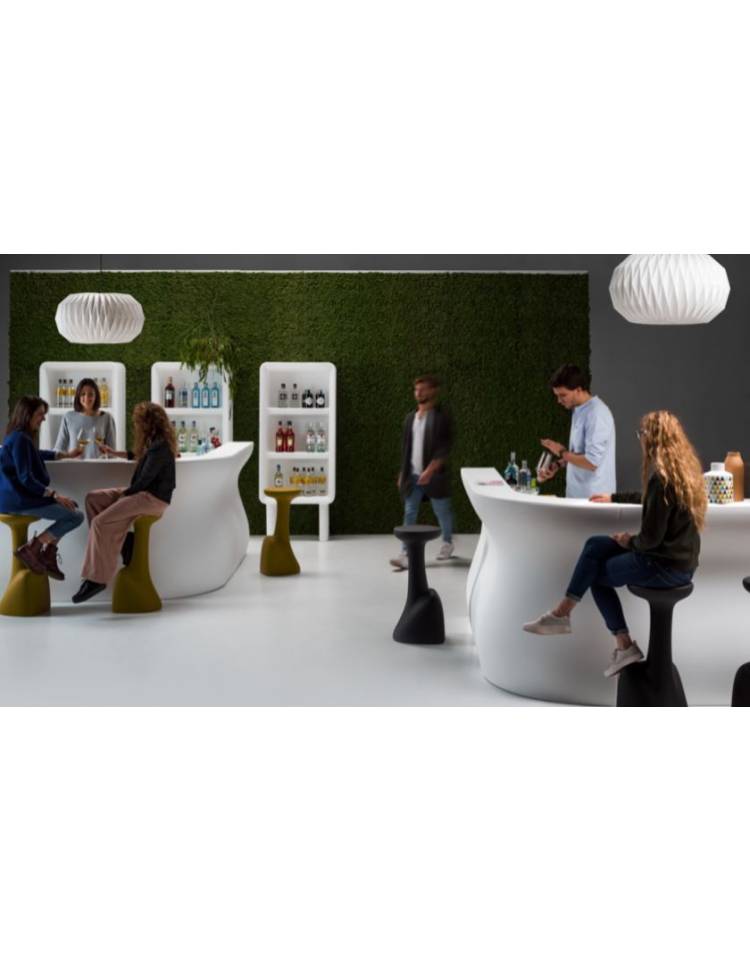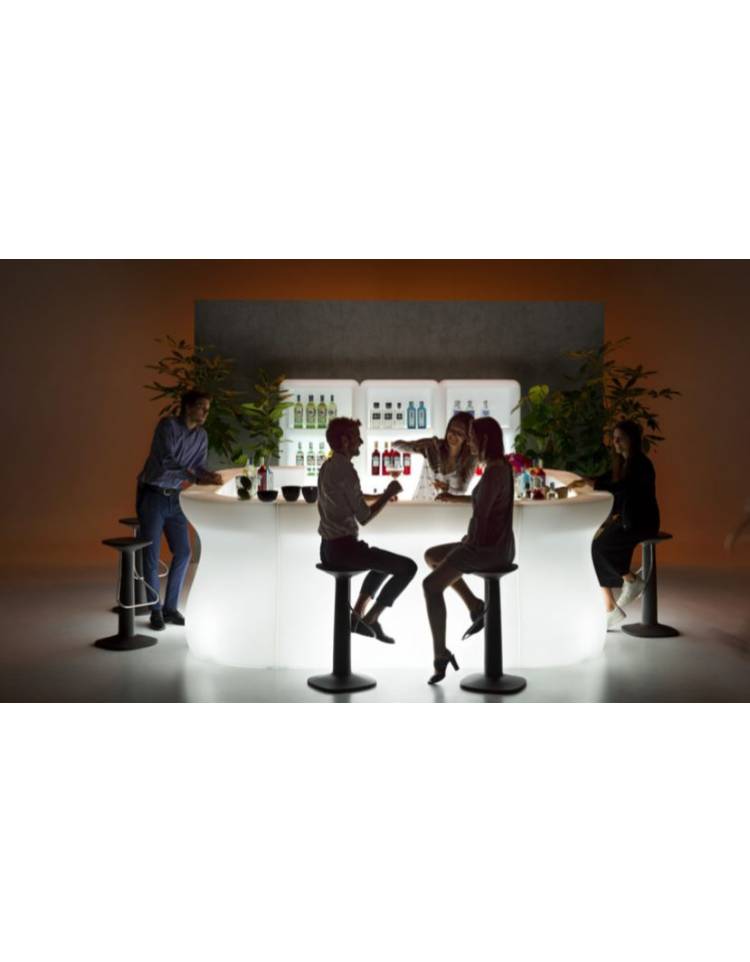 Predisposto per accogliere 5 mensole di stoccaggio, presenta 3 nicchie per l’utilizzo operativo ed è predisposto per un piano di copertura. Permette di creare infinite soluzioni strutturali: postazioni reception, banconi lineari e piano alto per buffet. La gamma completa di accessori bar e la versione Light, lo rendono un prodotto versatile e adatto all’uso sia indoor che outdoor. È predisposto per alloggiare da 1 a 3 kit luce standard o con luce RGB, per ricreare atmosfere suggestive in situazioni di convivialità.