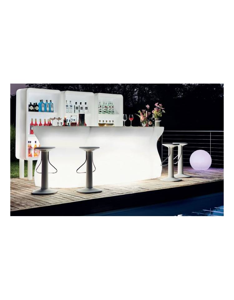 Predisposto per accogliere 5 mensole di stoccaggio, presenta 3 nicchie per l’utilizzo operativo ed è predisposto per un piano di copertura. Permette di creare infinite soluzioni strutturali: postazioni reception, banconi lineari e piano alto per buffet. La gamma completa di accessori bar e la versione Light, lo rendono un prodotto versatile e adatto all’uso sia indoor che outdoor. È predisposto per alloggiare da 1 a 3 kit luce standard o con luce RGB, per ricreare atmosfere suggestive in situazioni di convivialità.