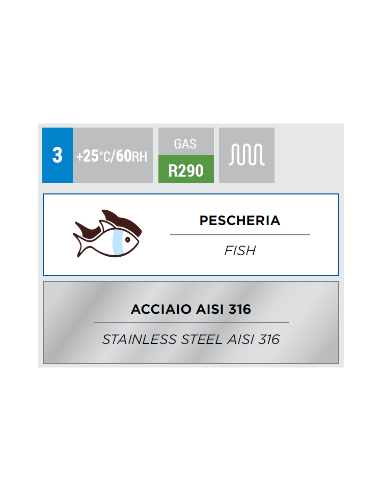 Il banco a servizio assistito è stato progettato per esporre e vendere pesce fresco e molluschi. Questo modello, grazie al ridotto impatto visivo e al vetro curvo, conferisce al prodotto esposto la massima visibilità e protezione. Il piano di lavoro in granito offre un’area affidabile e confortevole per le operazioni quotidiane.
