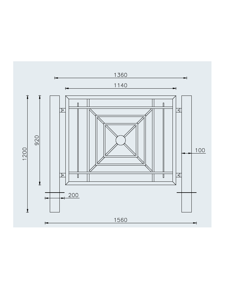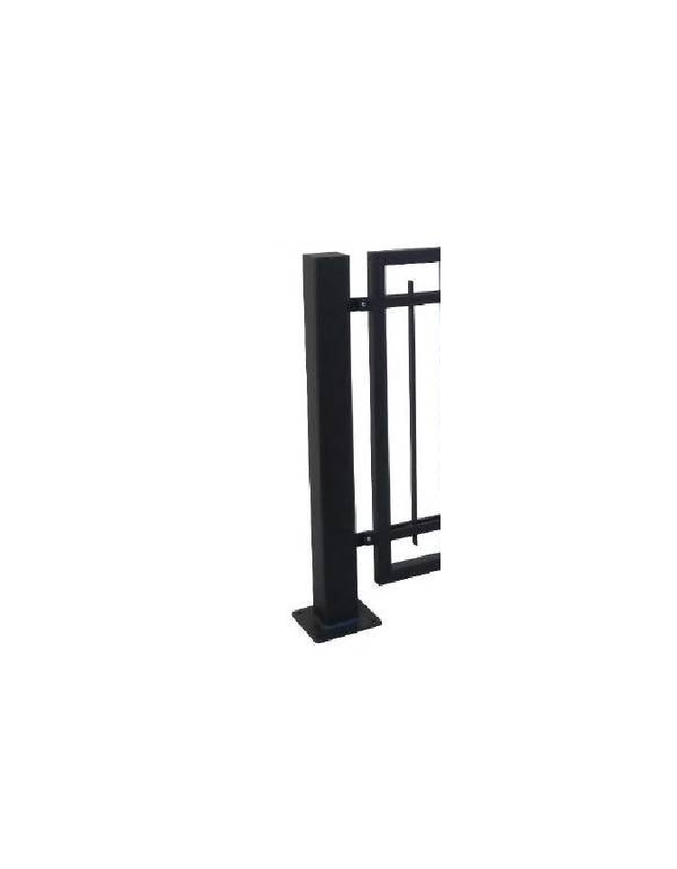 La barriera è composta da due sostegni in tubolare di acciaio sez. 10x10 cm con flangia alla base 200 mm Senza fori per la versione da inghisare per una profondità di 200 mm o con fori per fissaggio al suolo tramite tasselli ad espansione. Tutte le parti metalliche sono zincate e verniciate a polveri poliestere termoindurenti secondo le diverse colorazioni RAL.
