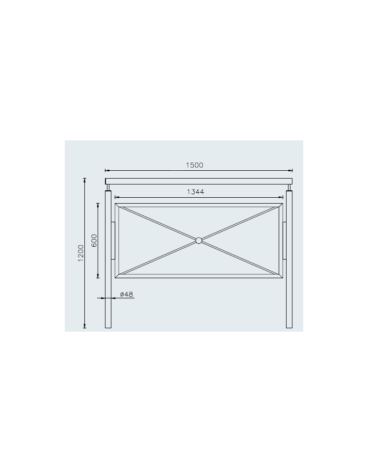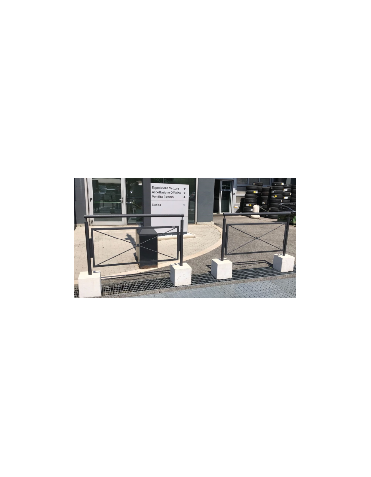 Barriera realizzata con supporti e traverso superiore in tubolare saldati tra di loro. Barriera di fattura gradevole usata per proteggere zone pedonali. Sia i montanti che il traverso superiore vengono realizzati in tubolare e vengono collegati tra loro alle estremità da una parte più stretta che si incastra e poi viene saldata. Il disegno interno viene fatto da un profilo angolare su cui viene fissato il tondino a forma di “x” (a richiesta si possono avere disegni diversi), saldato nel centro ad un anello. Tutte le parti metalliche sono zincate secondo normative UNI e verniciate a polveri poliestere termoindurenti nelle diverse tonalità RAL.