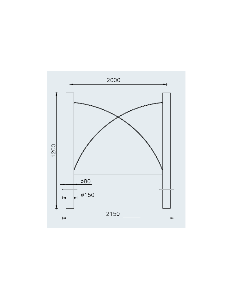 La barriera viene realizzata con due sostegni in tubolare di acciaio Ø 80x2 con finale a cupola saldato. La pannellatura è unita ai sostegni con viteria in acciaio inox, realizzata con un telaio a crociera ad “x” in piatto 40x5, calandrato leggermente ad arco con nodo centrale accoppiato e saldato fra di loro. La barriera può essere fornita modulare o singola. Tutte le parti metalliche sono zincate e verniciate a polveri poliestere termoindurenti secondo le diverse colorazioni RAL. Il pannello a croce può essere rivestito con un pannello in lamiera 12/10 su cui può essere affissa la pubblicità. Usata a protezione di marciapiedi vicino agli incroci o per piste ciclabili, lungo la viabilità urbana ed extraurbana.