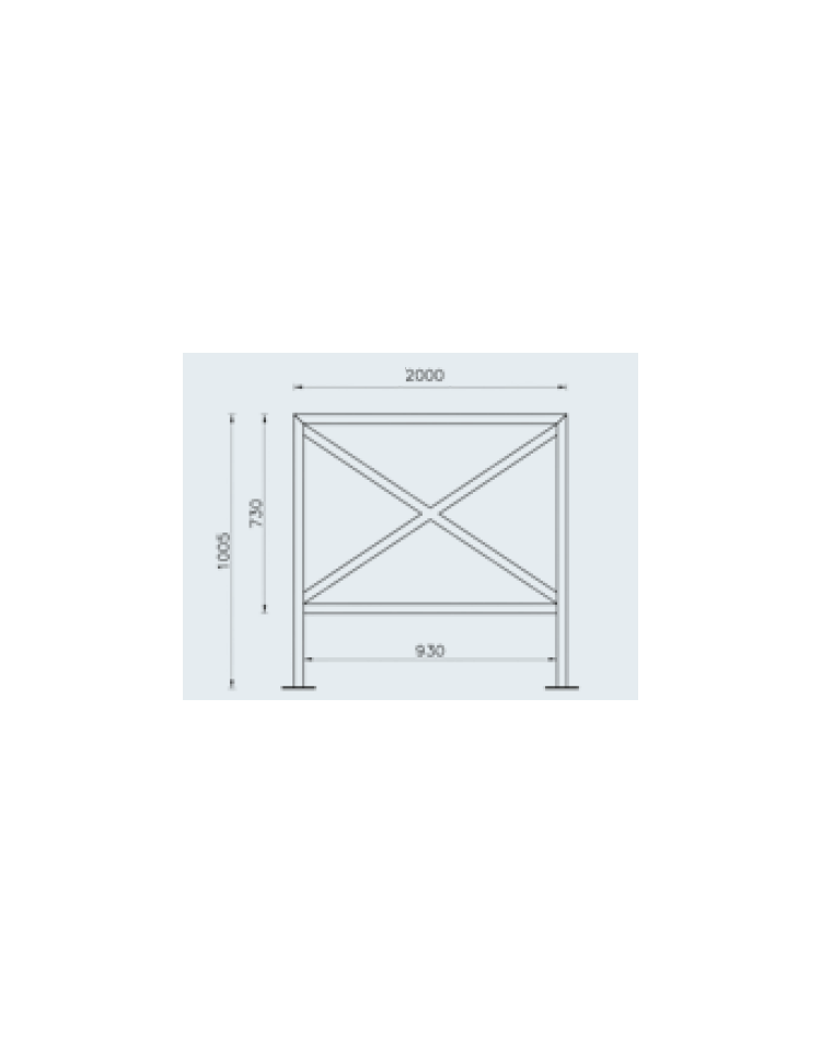 Barriera realizzata da un telaio perimetrale e crociera centrale con elementi in tubolare quadro. Tutte le parti sono zincate secondo normative UNI e verniciate a polveri poliestere termoindurenti nelle diverse tonalità RAL. Da tassellare al suolo con apposite basi quadre predisposte di fori per tasselli ad espansione. Transenna dal design semplice e lineare, con croce, utilizzata per delimitare marciapiedi, parcheggi, piazze, parchi. Vista la sua semplicità si adatta a tutti i luoghi.
