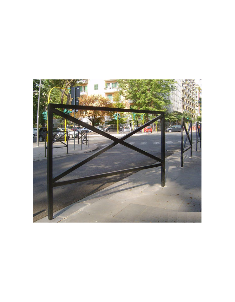 Barriera realizzata da un telaio perimetrale e crociera centrale con elementi in tubolare quadro. Tutte le parti sono zincate secondo normative UNI e verniciate a polveri poliestere termoindurenti nelle diverse tonalità RAL. Transenna dal design semplice e lineare, con croce, utilizzata per delimitare marciapiedi, parcheggi, piazze, parchi. Vista la sua semplicità si adatta a tutti i luoghi.