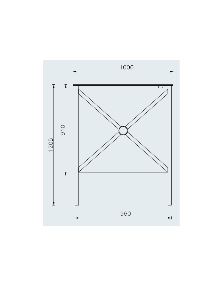 La barriera è realizzata da un telaio perimetrale e crociera centrale con elementi in tubolare quadro 35x2. Il nodo centrale è realizzato con un anello in tubo tondo 89x4 mm spessore 35 mm. La barriera è fornita di “corrimano” in acciaio mezzotondo 50x10. Tutte le parti metalliche sono zincate secondo normative UNI e verniciate a polveri poliestere termoindurenti nelle diverse tonalità Ral. Inghisata al suolo. Può su richiesta essere adattata per portare pannello pubblicitario.