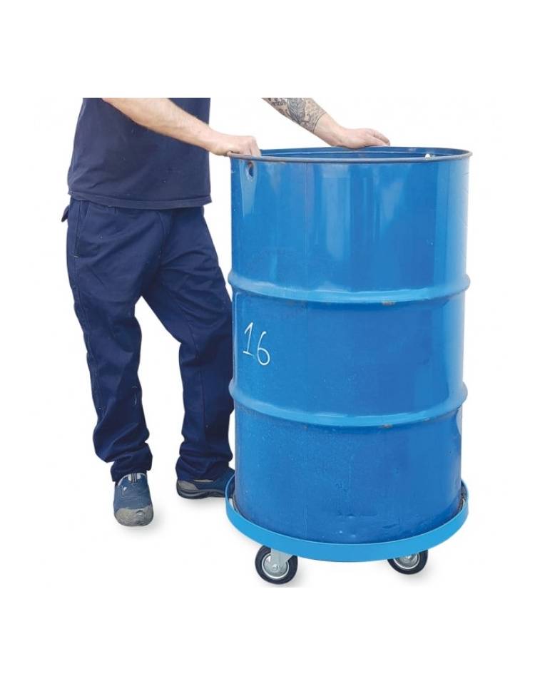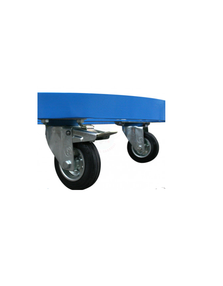 Base carrellata per fusti con doppio freno di stazionamento per fusti cm Ø 60 - Dimensioni cm Ø 62 - Altezza da terra mm 135
