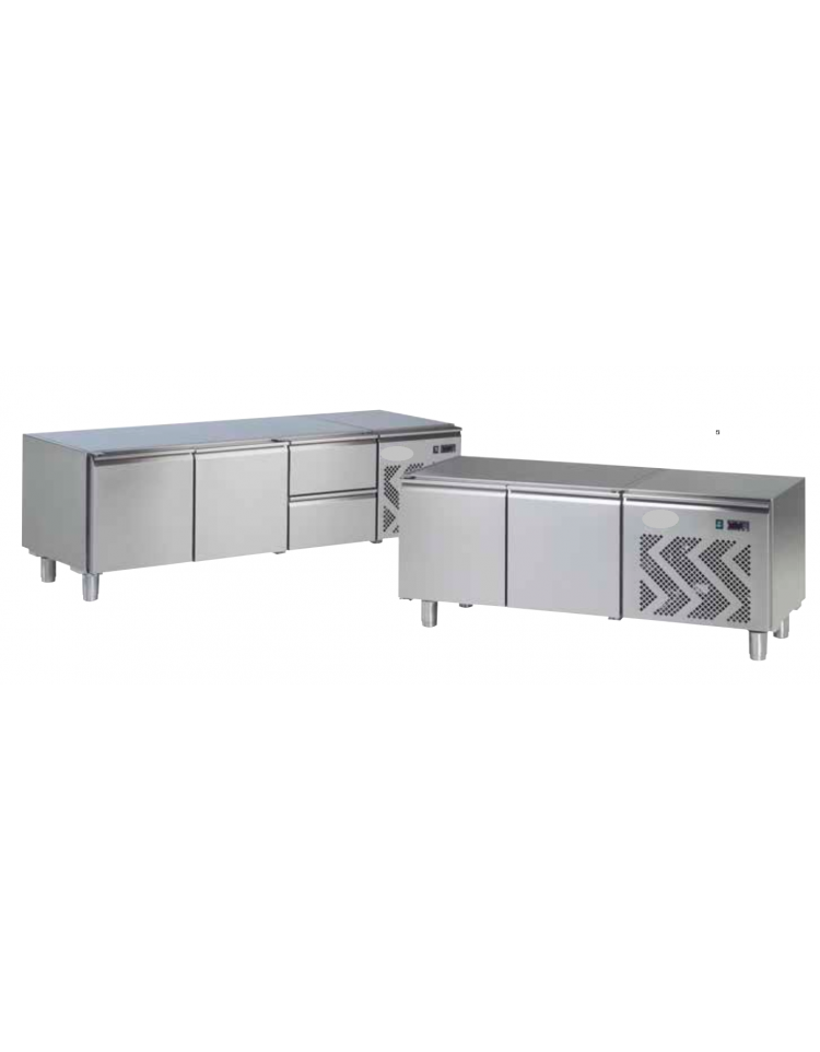 Base refrigerata GN 1/1 in acciaio inox AISI 304, 3 porte - Lt 195 - Temperatura -2/+8°C - con gas R290 - cm 160x65x62h