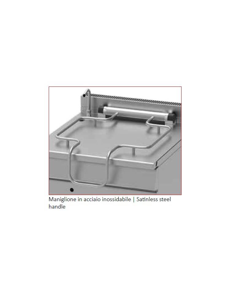 Brasiera ribaltabile con recipiente parallelepipedo in bimetallo (compound), posizionabile a parete, singolarmente o in batteria. È indicata per ristoranti e mense di piccole e medie dimensioni. Per l’utilizzo su navi e battelli è previsto l’ancoraggio a pavimento. A richiesta è fornibile la versione con ribaltamento automatico. Per la versatilità di utilizzo, le dimensioni e i ridotti consumi è ideale per la preparazione di prodotti alimentari anche nei piccoli laboratori artigianali.