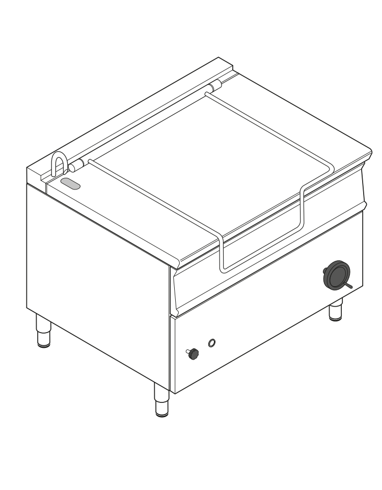 Brasiera basculante Lt 120 elettrica - 1 vasca inox cm 109,8x56,4x20, ribaltamento manuale - trifase Kw 15 - cm 120x90x90h