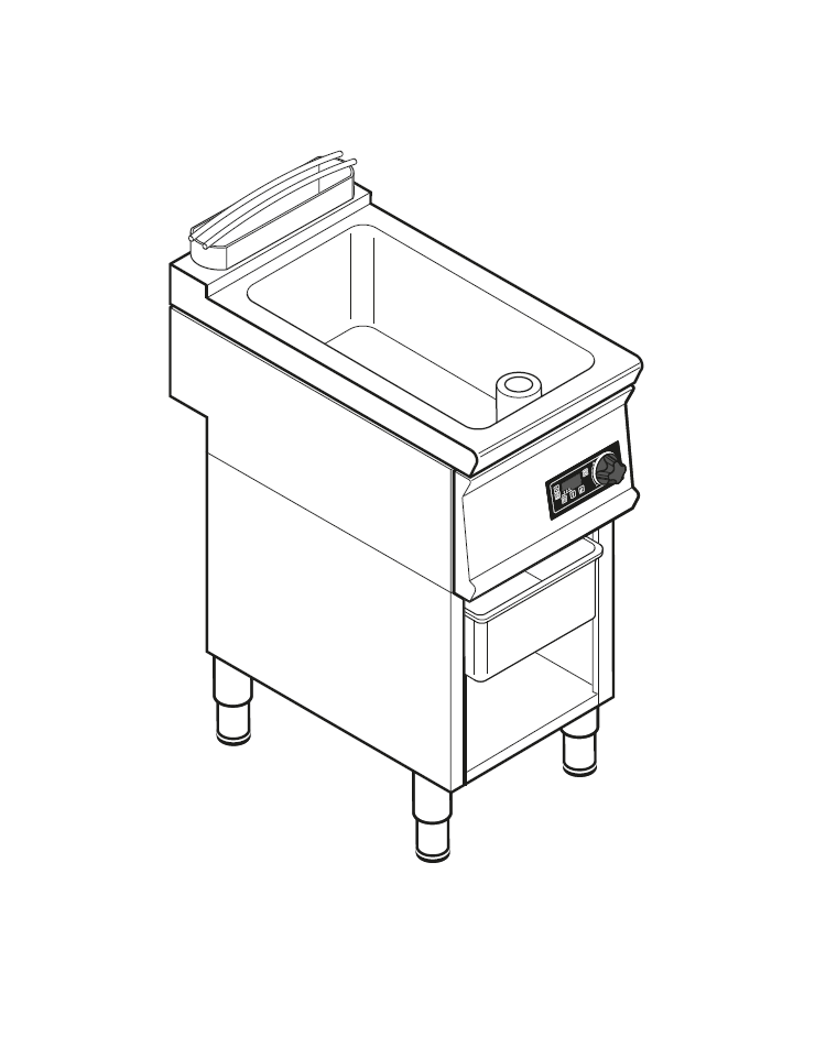 Brasiera elettrica multifunzione su vano aperto - 1 vasca da Lt 28 con fondo duplex - controllo elettronico - cm 80x70x90h