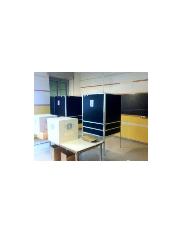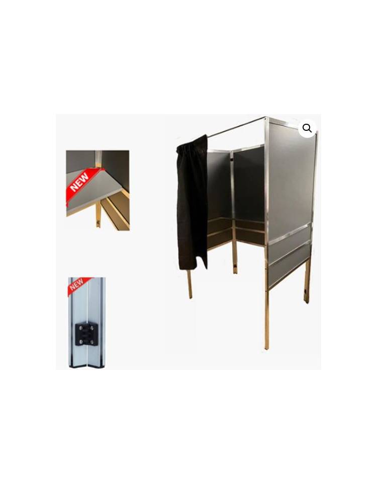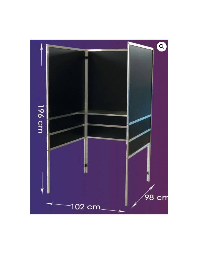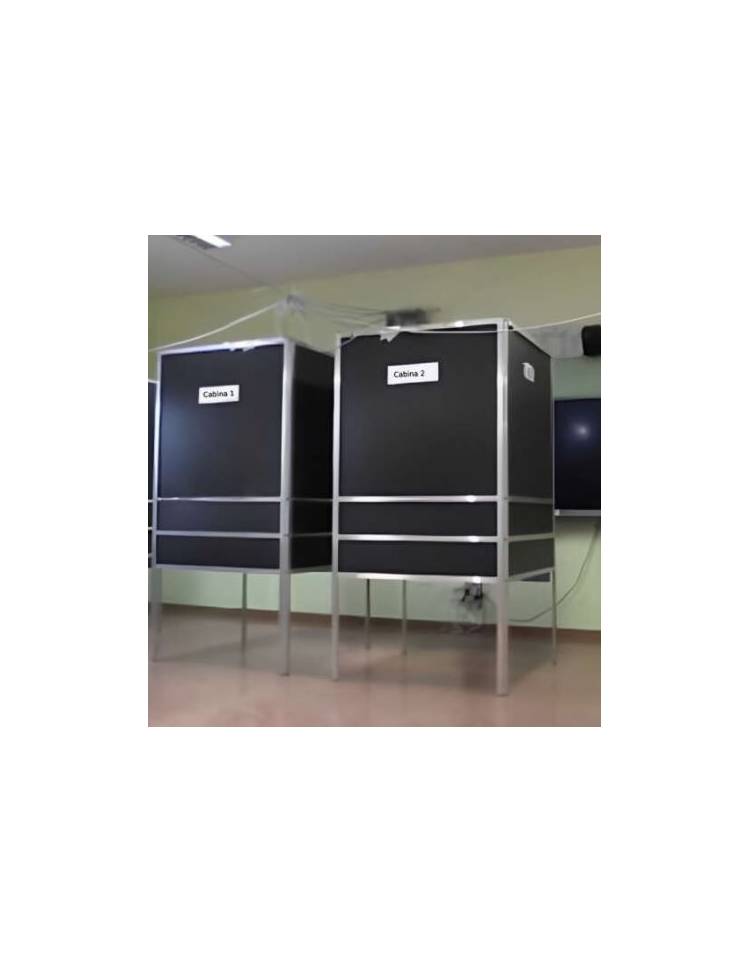 Cabina elettorale polivalente in alluminio con tendina in TNT ignifuga e piano di scrittura mobile