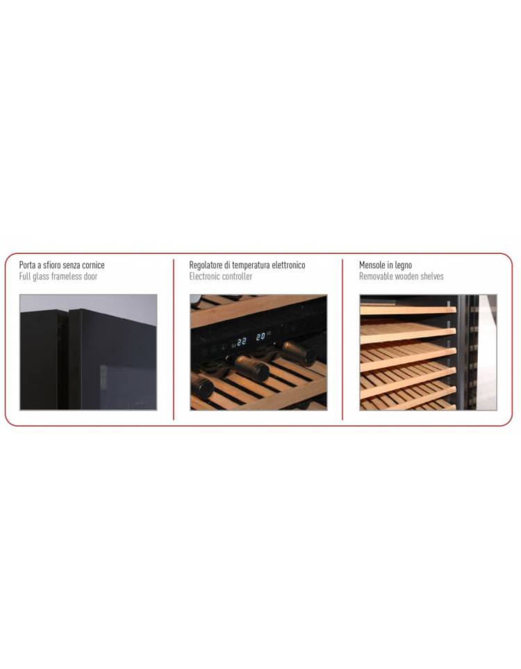Cantinetta per vino ventilata - porta in vetro nero senza cornice - N° 19 Bottiglie vino - +2°C /+20°C - cm 29,5x57,3x82h