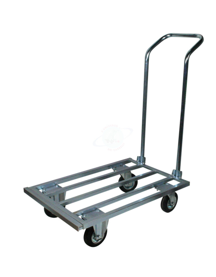 Carrello con pianale allungabile zincato e manico pieghevole maxi - chiuso mm 485x1100x260 h - aperto mm 485x1100x950