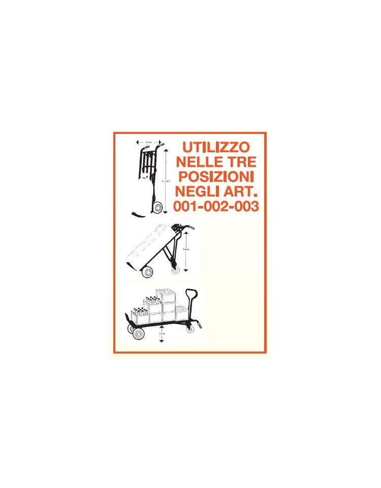 - Carrello verticale a 2 ruote: permette di sostenere in modo agile e veloce pacchi o pannelli di dimensioni contenute.