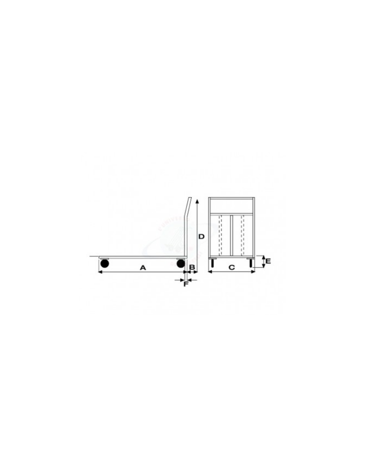 Carrello a pianale in lamiera 12/10, struttura acciaio alimentare AISI 304 - 2 ruote fisse, 2 girevoli Ø cm 12,5 - piano cm 50x
