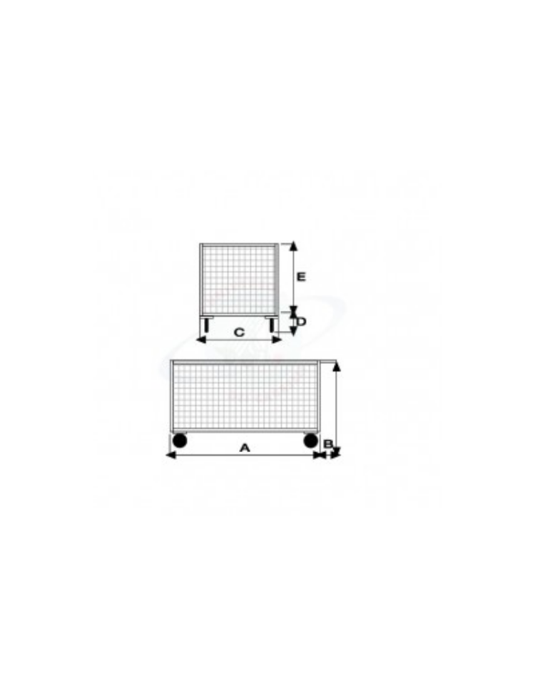Carrello a pianale verniciato - 4 sponde in rete, 1 ribaltabile - 4 ruote pneumatiche (2 girevoli) - dim. utili cm 75x115x60,5h
