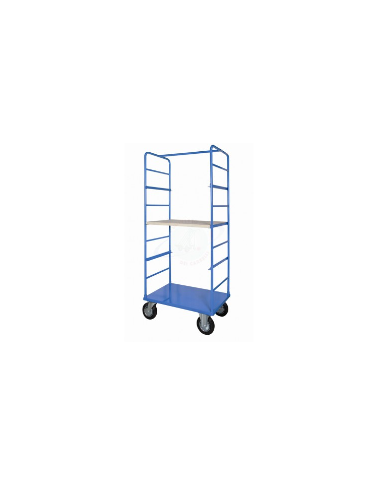 Carrello a ripiani medio - 4 ruote Ø cm 20 gomma piena (2 fisse 2 girevoli), 2 con freno - cm 60x90x180h