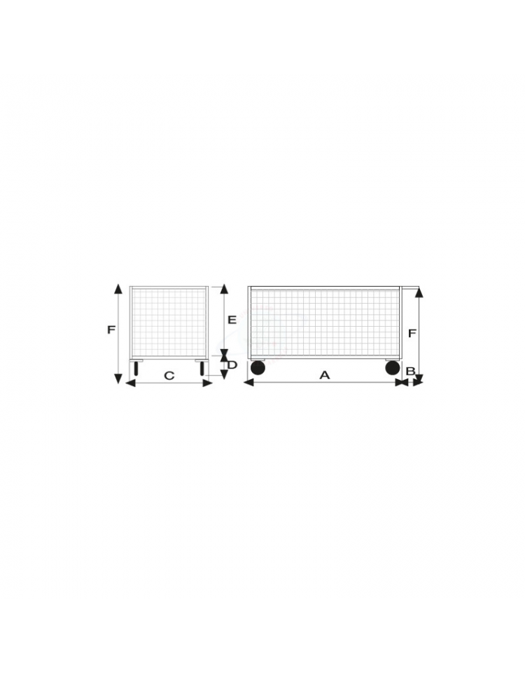 Carrello con pianale, 3 sponde rete verniciata - 4 ruote (2 fisse - 2 girevoli) 2 ruote con freno - dim. utili cm 77,5x115x60,5h