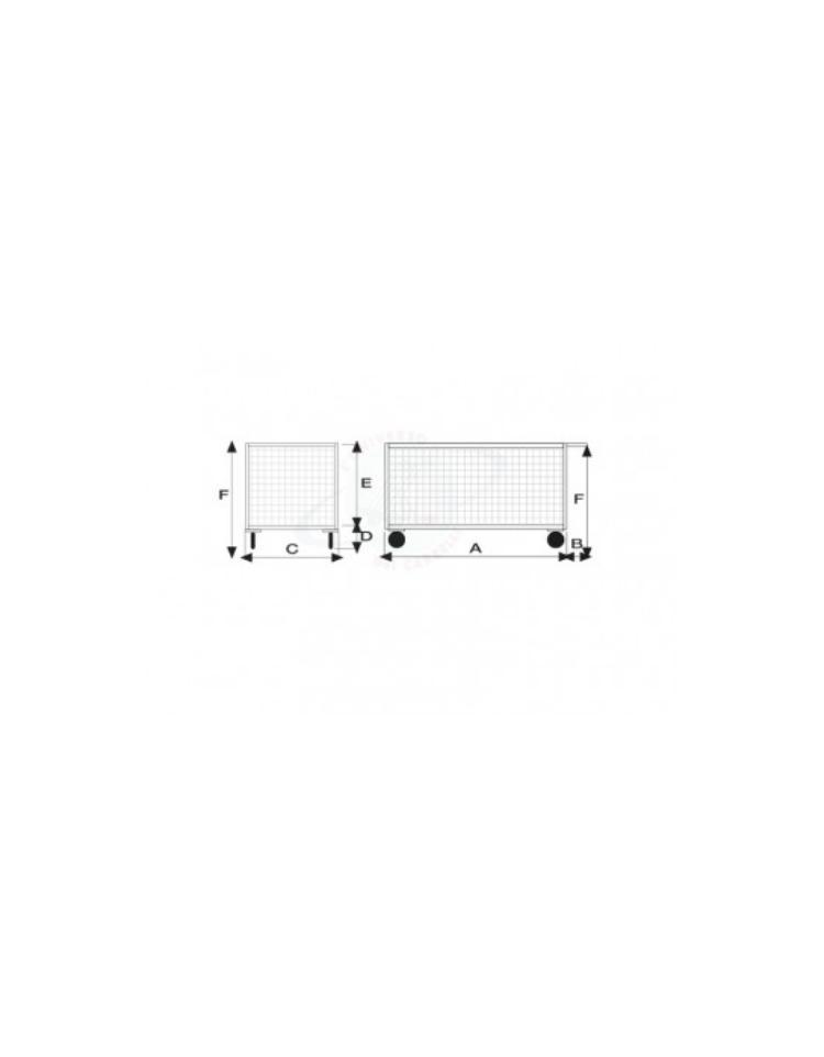 Carrello con pianale a 3 sponde in rete verniciata - 4 ruote antiforatura (2 fisse-2 girevoli) - dim. utili cm 77,5x115x60,5h